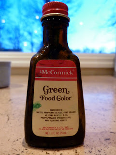 After rummaging through the pantry, I found some "Willow Green" from Wilton's Country Colors. Desperate times call for desperate measures, and I had no time for a ShopRite run, so I put some in...