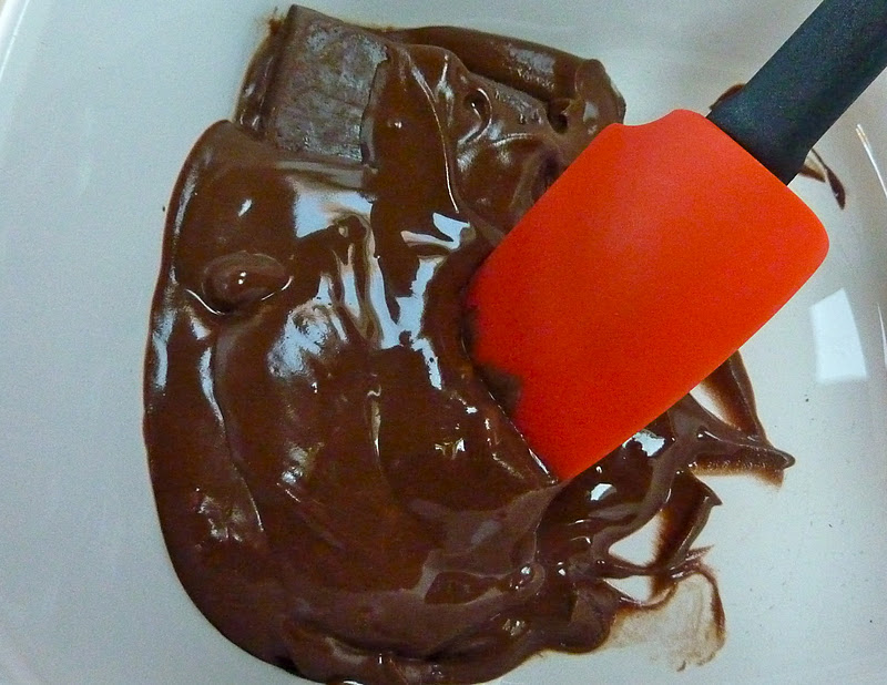 I used chocolate bark for my "glue". One square is plenty. You can also use frosting.